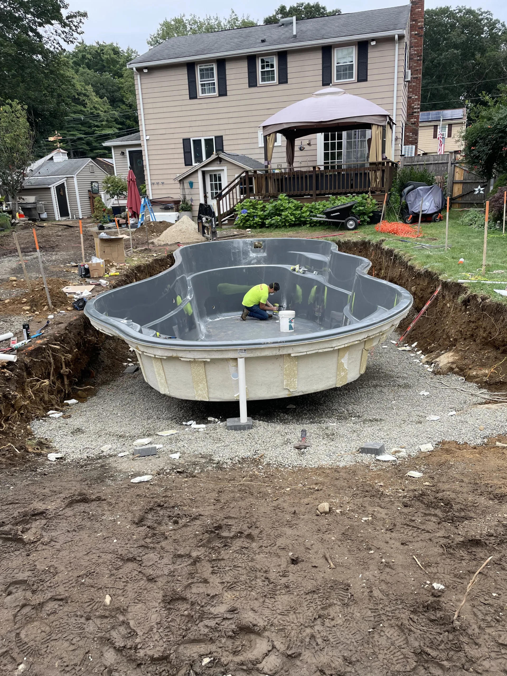 Naturally, we go through designs with customers before any excavation or fiberglass pool installation work begins. Still, we try to ensure they understand early in the process that we may need to flatten more space than they originally think to make room for their pool.