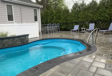 In Newton MA, This backyard transformation took a narrow, underutilized space and turned it into a modern outdoor escape. The fiberglass pool fits perfectly between the house and the property line, framed with a clean paver surround and minimalist landscaping to make the space feel larger than it is. Despite the tight constraints, the final product delivers both style and performance, offering the homeowner a low-maintenance, high-impact pool area that feels like a natural extension of the home. The project showcases how smart design and precise execution can overcome even the most restrictive site conditions.