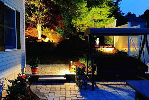 Pathway lighting, uplighting for trees, and accent lights
